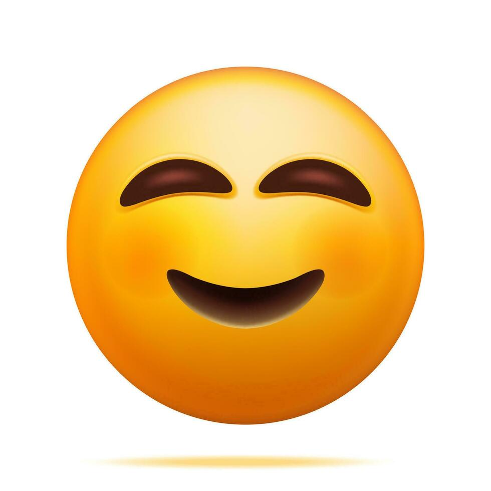 3D Yellow Happy Emoticon Blushing with Smiling Eyes Isolated. Render Slightly Smiling Emoji. Happy Face Simple. Communication, Web, Social Network Media, App Button. Realistic Vector Illustration Pro Vector
