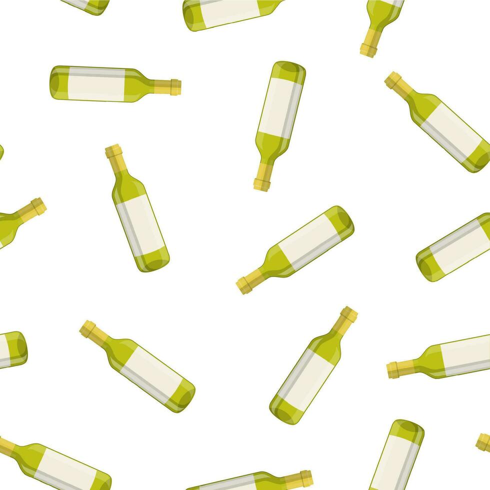 bottle of wine isolated on white background. Seamless Repeat Pattern Background. Vector illustration in flat style For web, info graphics. Pro Vector
