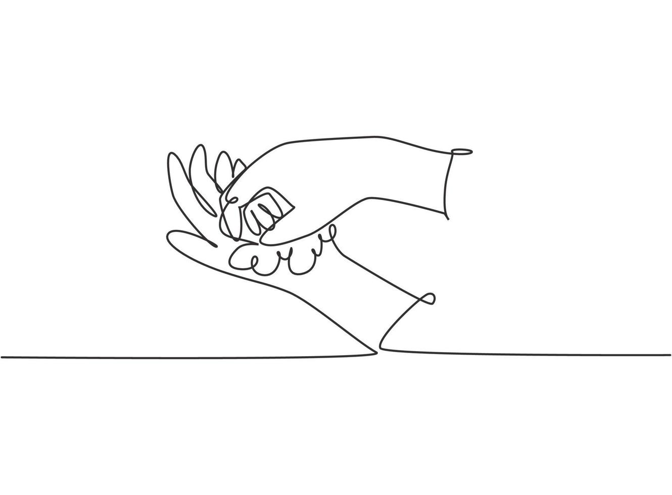 Continuous one line drawing twelve steps hand washing by rubbing the palms of the hands with soap until they are clean from germs. Hand hygiene. Single line draw design vector graphic illustration. Pro Vector
