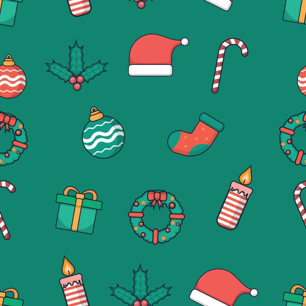 Christmas element seamless pattern on a green background. Vector design template. Happy New Year pattern. Season greeting.