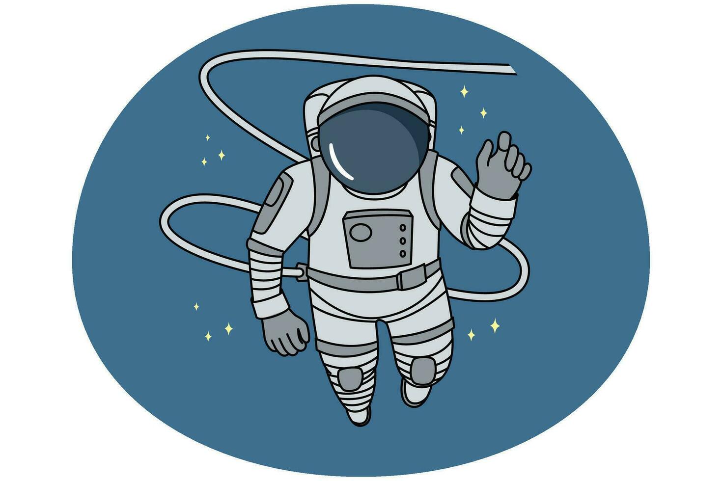 Astronaut in space costume flying in open universe. Cosmonaut in in spacesuit in cosmos. Astrology and science. Vector illustration. Pro Vector