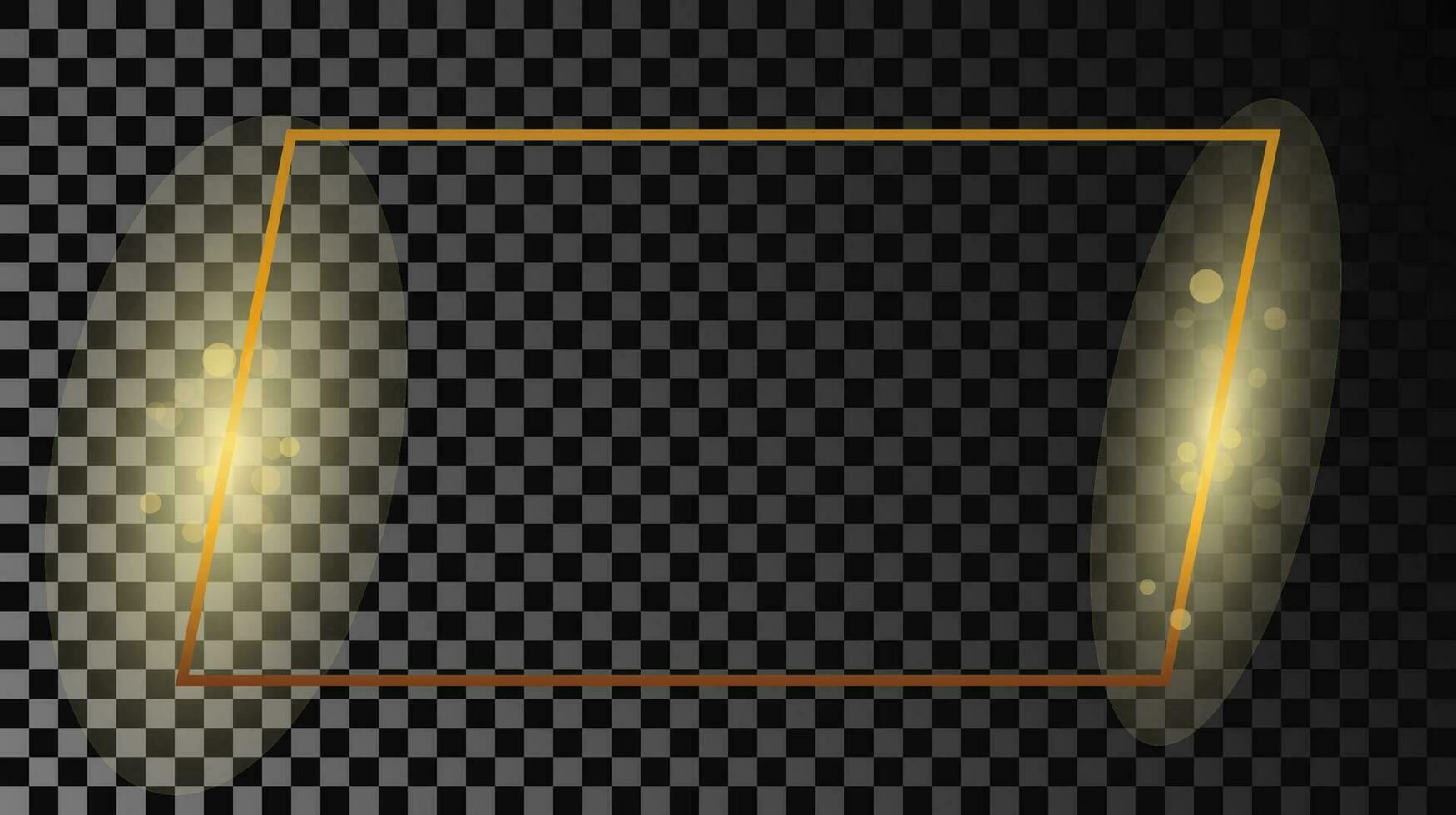 Gold glowing rectangular shape frame isolated on dark background. Shiny frame with glowing effects. Vector illustration. Pro Vector