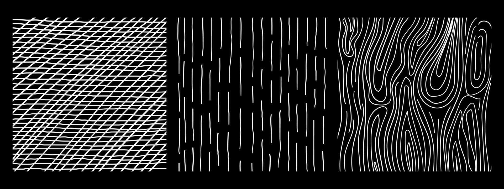 Squares textures with different hand drawn patterns. Pencil lines on black background. Pro Vector