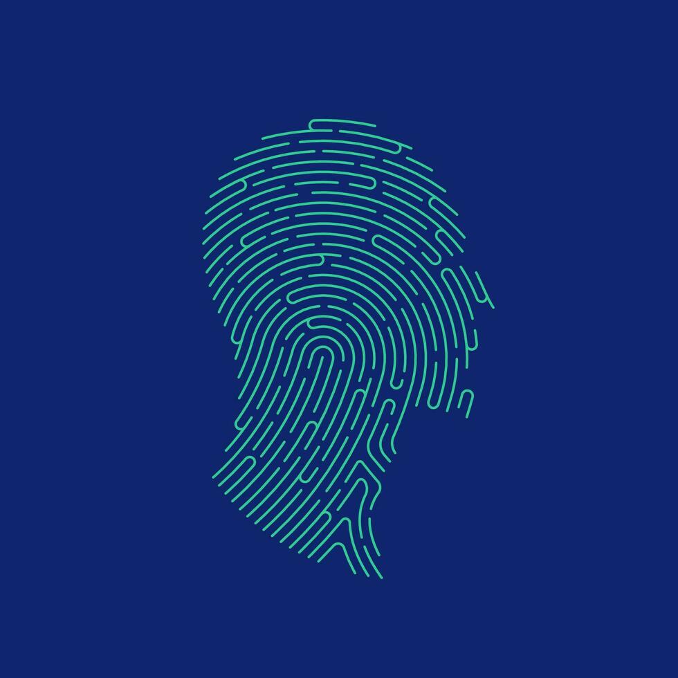 concept of biometrics or digital forensics, graphic of fingerprint combined with man face created with editable path Pro Vector