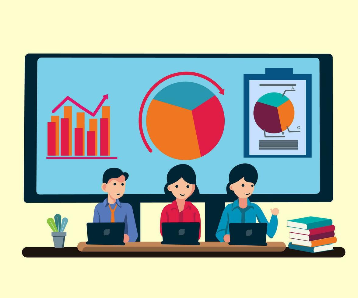 flat design, admin data analyst, for an office, vector illustration is very suitable for business, office, data, analysis themes Pro Vector