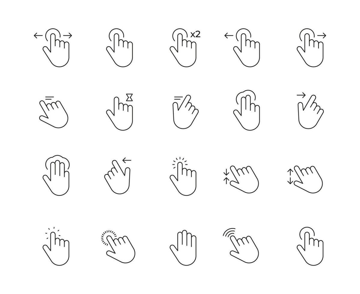 Web gesture hand icons. Simple icons with hand using smartphone, sign fingers touch, click, zoom, rotate, tap display. Touchscreen interface. Vector set Pro Vector