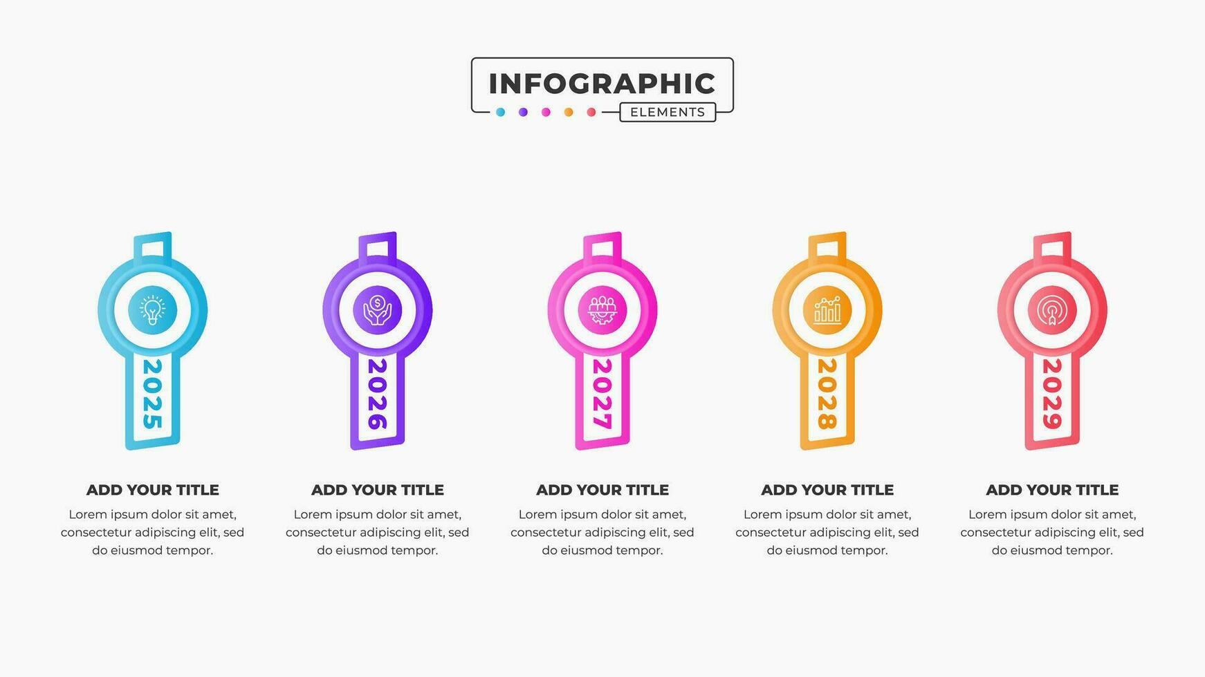 Vector presentation timeline infographic design template with 5 steps or options Pro Vector