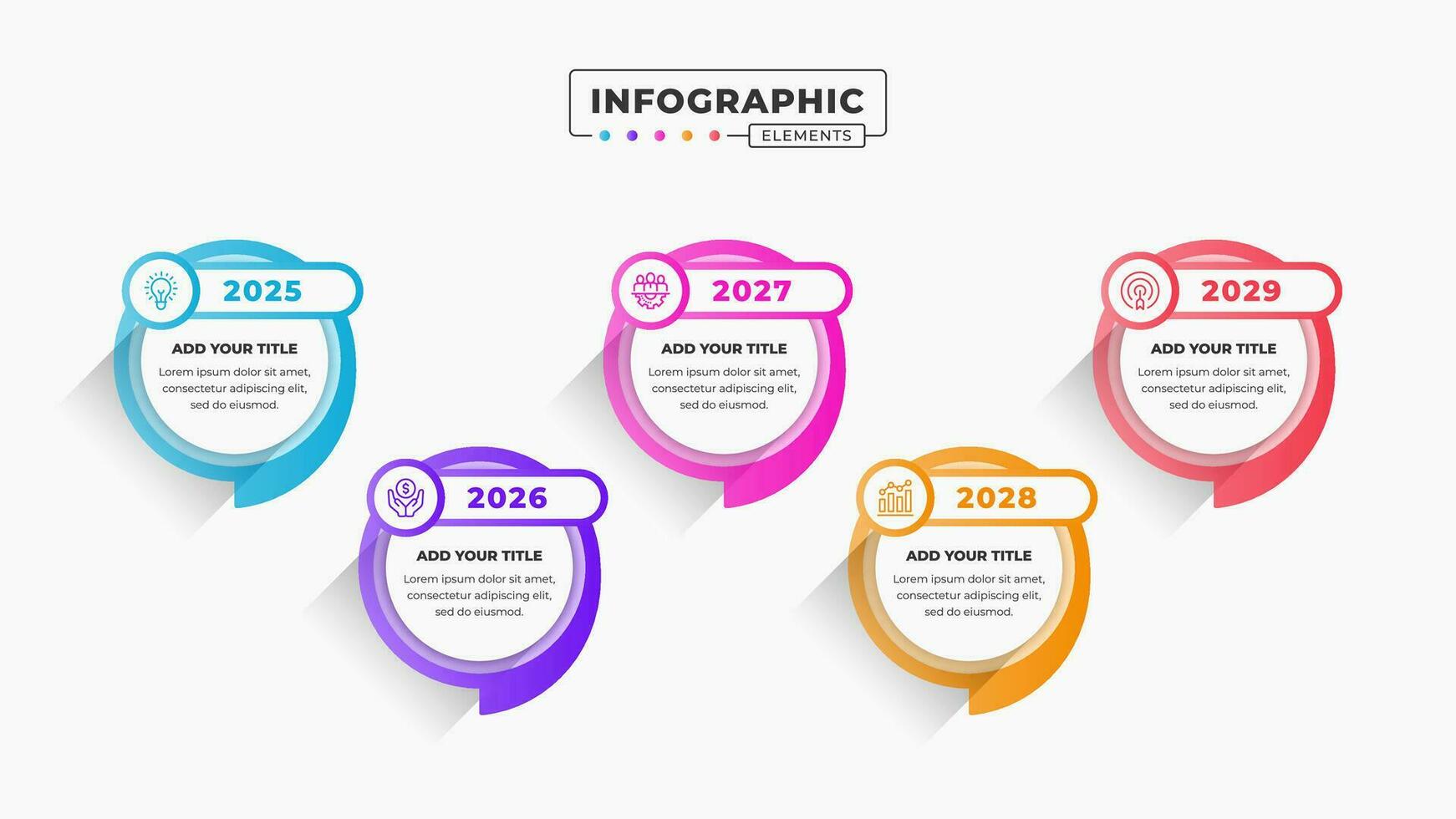 Vector presentation speech bubble timeline infographic design template with 5 steps or options Pro Vector