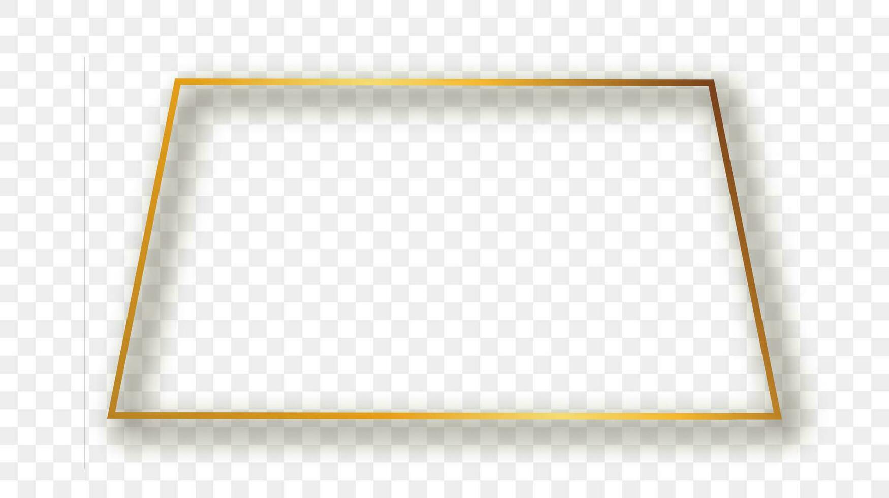 Gold glowing trapezoid shape frame with shadow isolated on background. Shiny frame with glowing effects. Vector illustration. Pro Vector