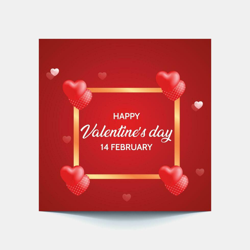 Valentine's square banner design template. Red background with love line frame. Usable for social media post, greeting card, banner, and web ad. vector