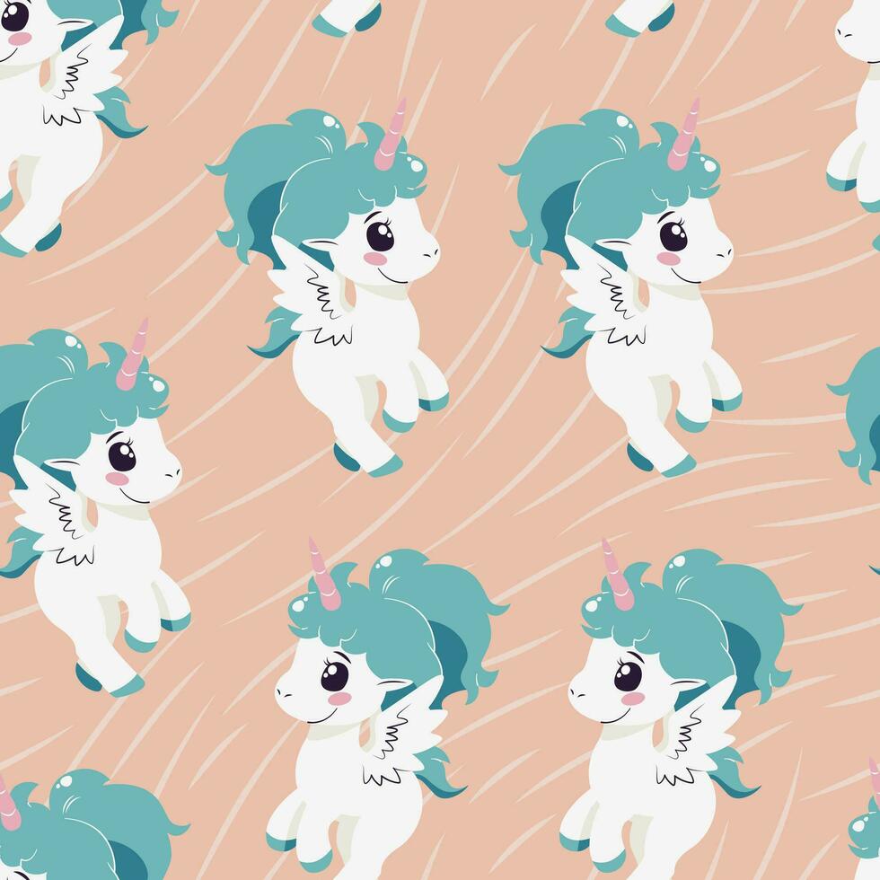 Seamless pattern with magic unicorns. Vector tile with cartoon character for childish print, wrapper, textile, print, fabric. Pro Vector