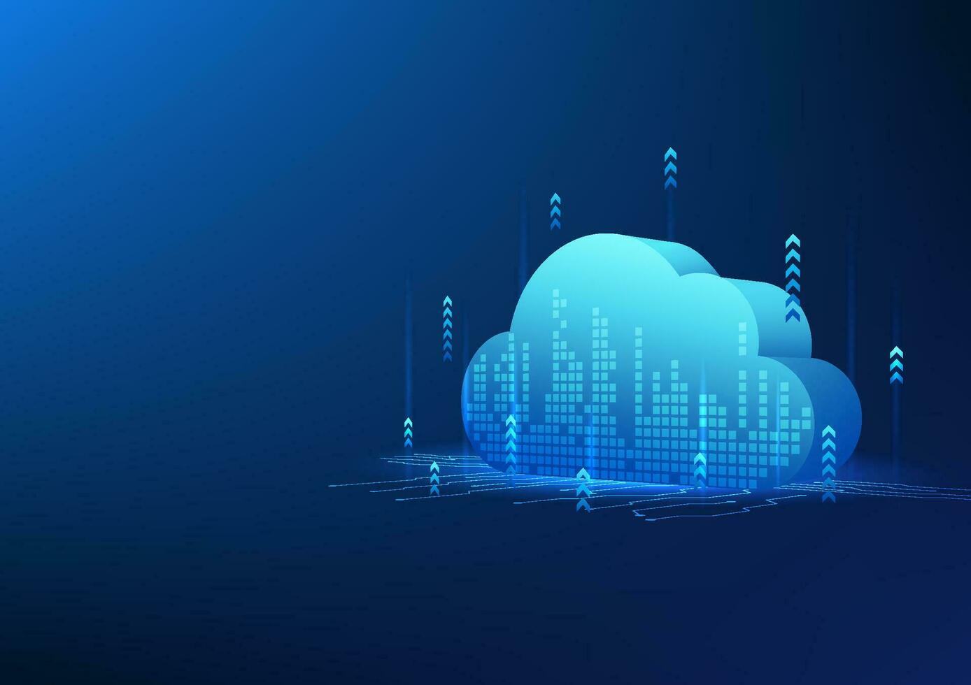 Cloud technology A cloud that stores information in the system and shares information via the internet signal. There is an identity verification system. Clouds connected to the circuit with arrows Pro Vector