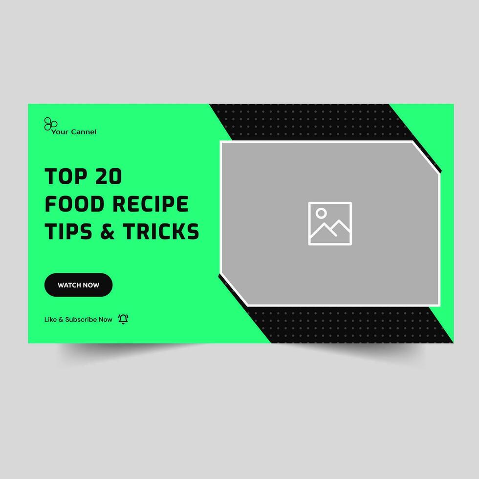 Video tutorial tips and tricks food menu thumbnail banner design, food recipe video cover banner design, editable vector eps 10 file format Pro Vector