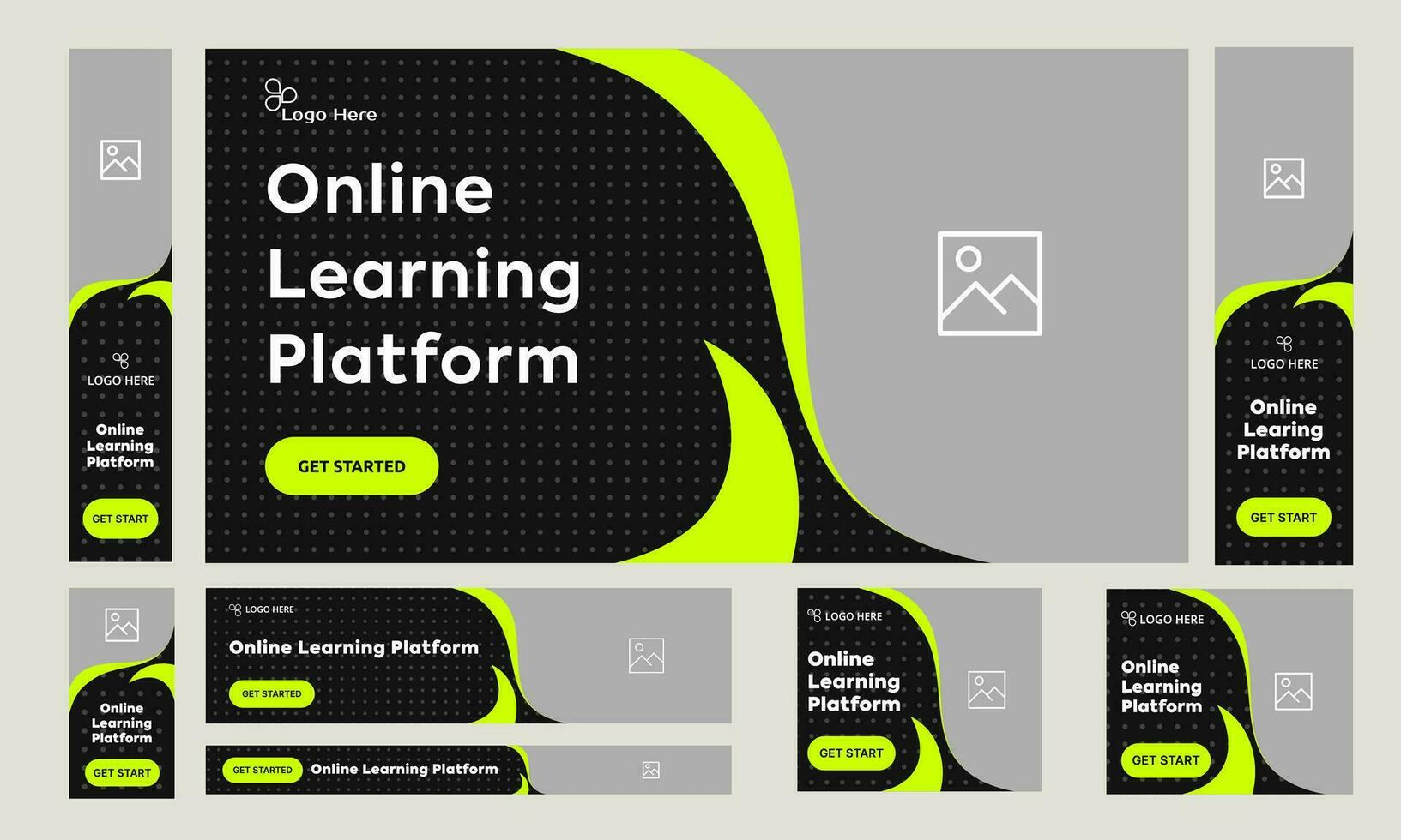Vector online learning services web set banner design for social media post, education platform bundle banner design, fully editable vector eps 10 file format Pro Vector