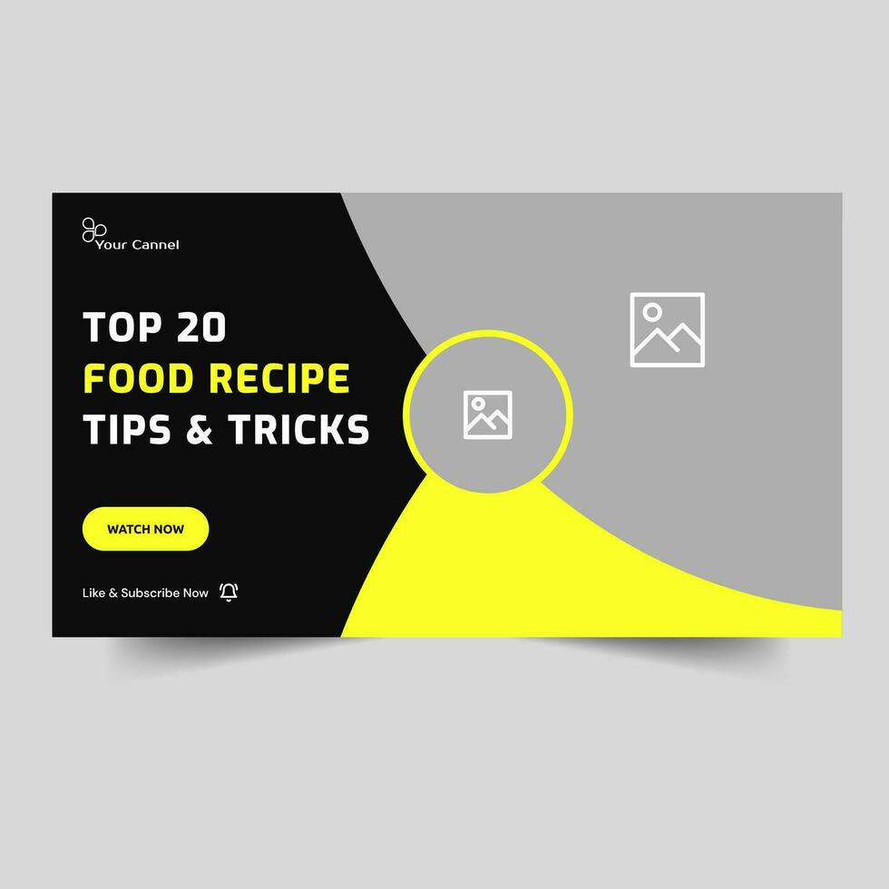 Fully editable vector food review tutorial tips and tricks thumbnail banner design, food menu recipe video cover banner design, vector eps 10 file format Pro Vector