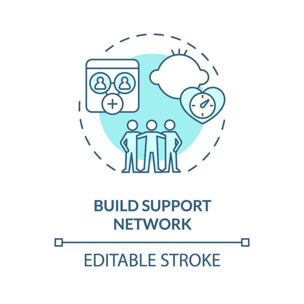 2D editable thin line icon build support network concept, isolated monochromatic vector, blue illustration representing parenting children with health issues. Pro Vector