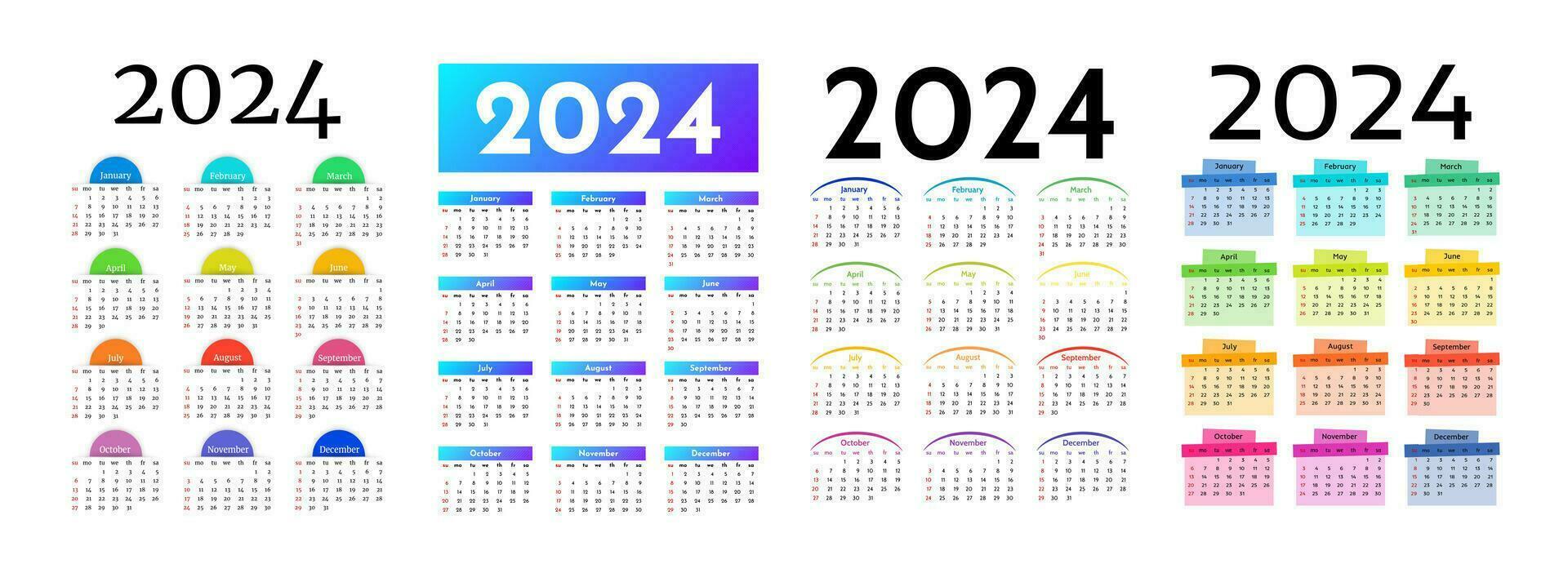 Set of four vertical calendars for 2024 isolated on a white background. Sunday to Monday, business template. Vector illustration Pro Vector