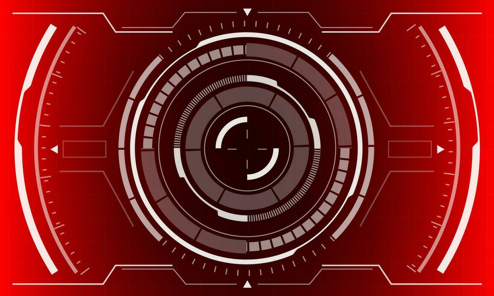 HUD sci-fi circle interface screen view white geometric on red design virtual reality futuristic technology creative display vector Pro Vector