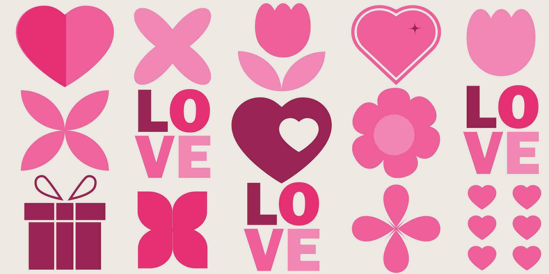 Bauhaus Geometric Valentine's day pattern with simple shapes. Romantic vector background. Modern abstract design for print, banner, fabric, card, wrapping paper, cover. Pro Vector