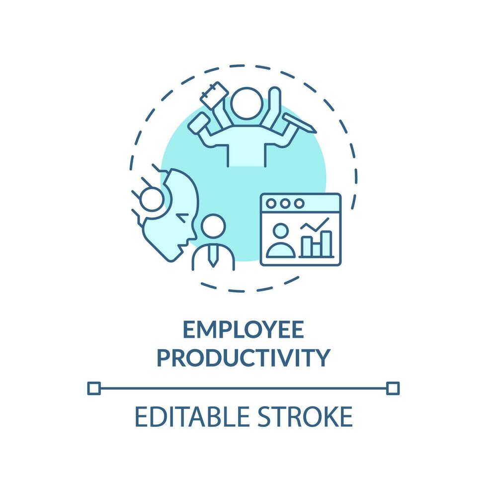 2D editable blue employee productivity icon, monochromatic isolated vector, thin line illustration representing cognitive computing. Pro Vector