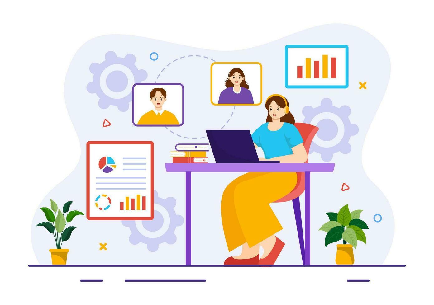 VOIP or Voice Over Internet Protocol Vector Illustration with Telephony Scheme Technology and Network Phone Call Software in Flat Background Pro Vector