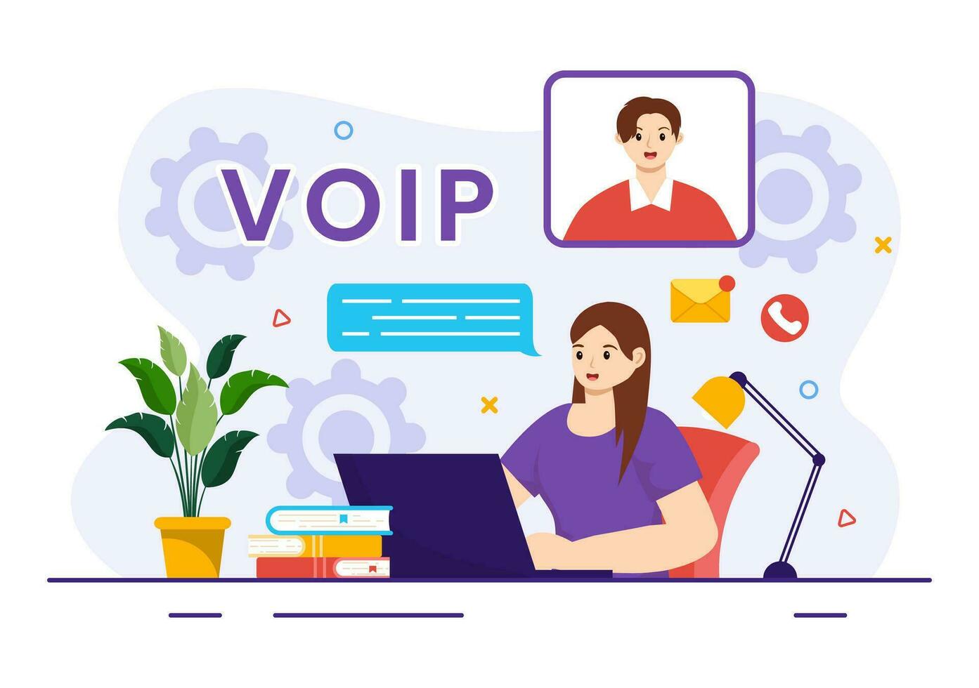 VOIP or Voice Over Internet Protocol Vector Illustration with Telephony Scheme Technology and Network Phone Call Software in Flat Background Pro Vector