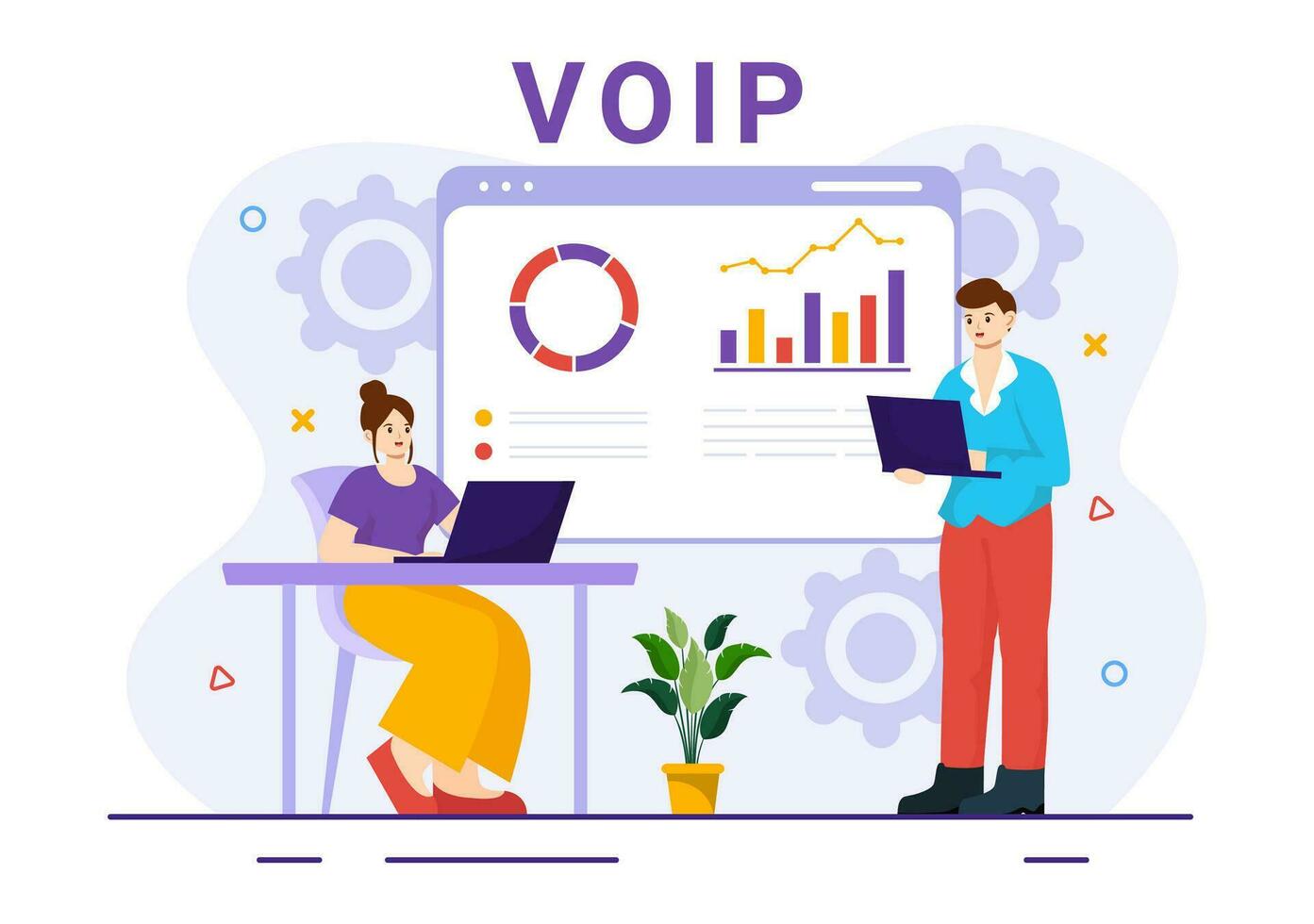 VOIP or Voice Over Internet Protocol Vector Illustration with Telephony Scheme Technology and Network Phone Call Software in Flat Background Pro Vector