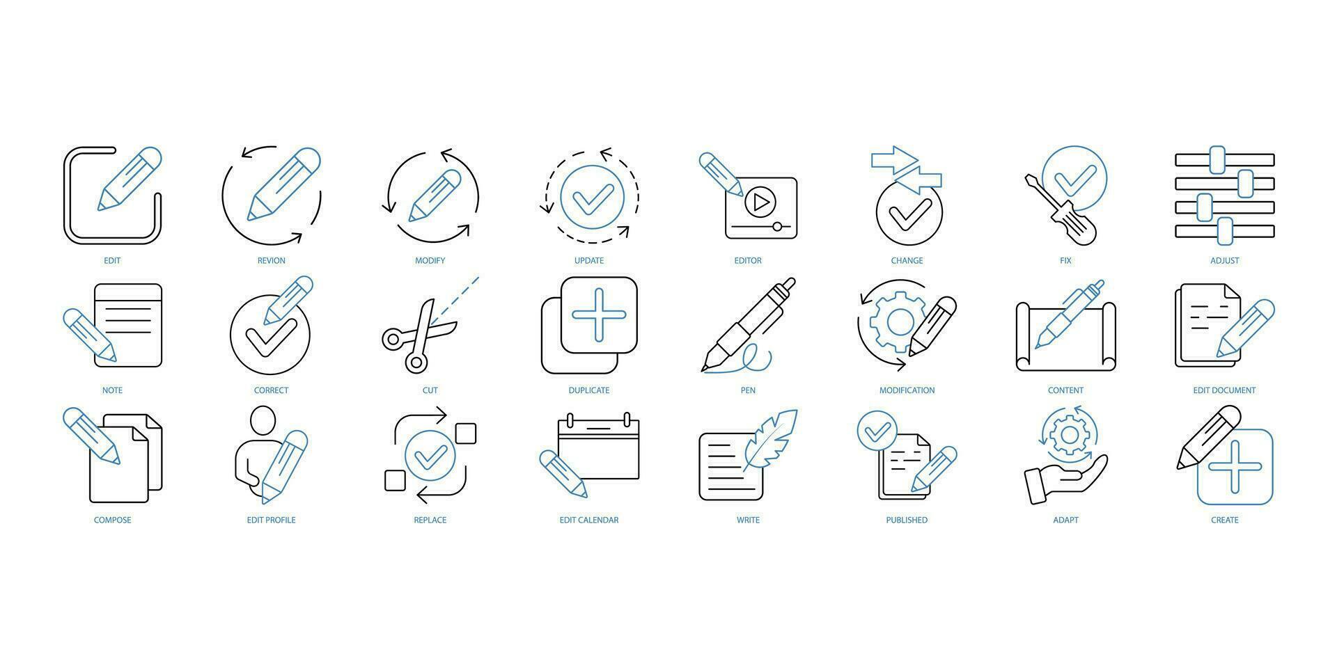 Edit tool icons set. Set of editable stroke icons.Vector set of Edit tool Pro Vector