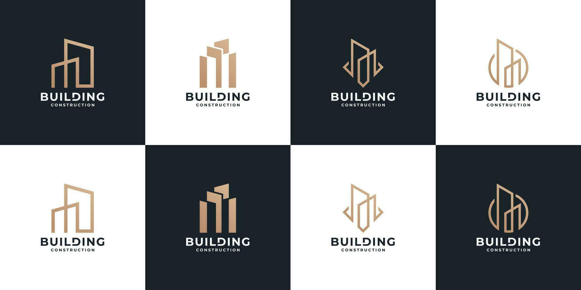 set of abstract building architecture logo design. collection of skyscraper logo vector. Pro Vector