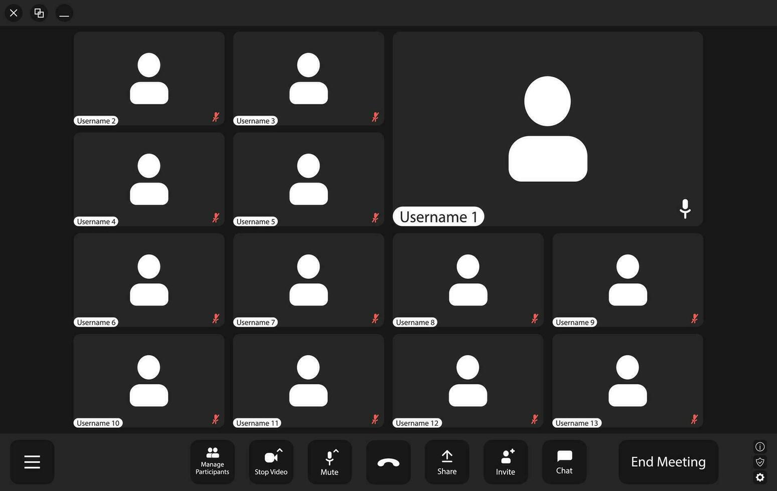 UI UX template for laptop, desktop and phone. Video meeting UI for 13 users. Modern style with new buttons Pro Vector