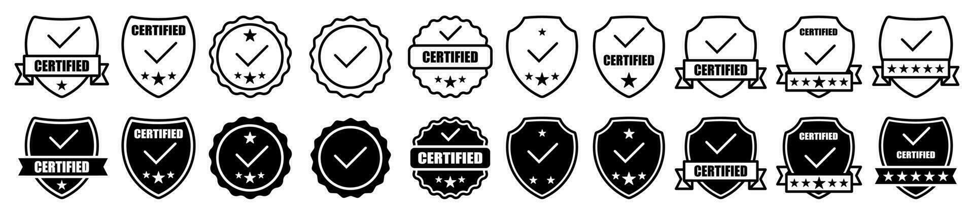 Approved label icon sign vector set. Collection of approval badge with check mark symbol illustration. Isolated on white background Pro Vector