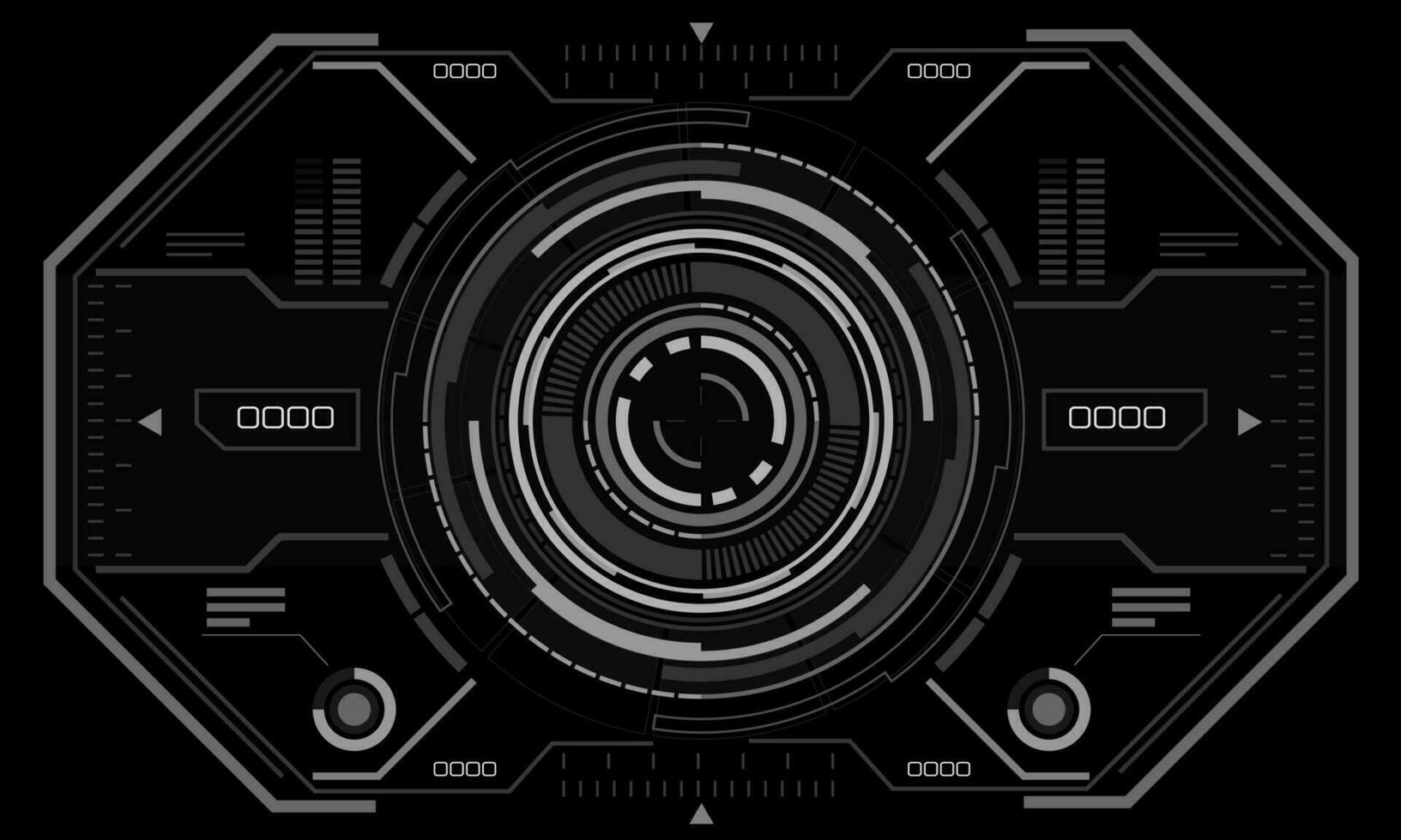 HUD sci-fi circle interface screen view white geometric design virtual reality futuristic technology creative display on black vector Pro Vector