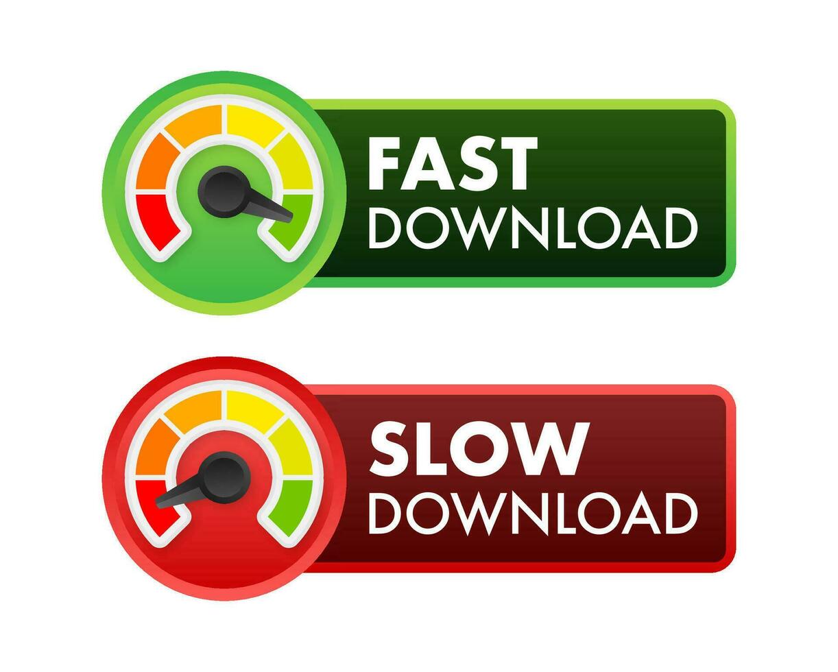 Download Speed Meter Concept with Fast and Slow Indicators, Vector Illustration for Internet Connectivity and Data Rate Measurement Pro Vector