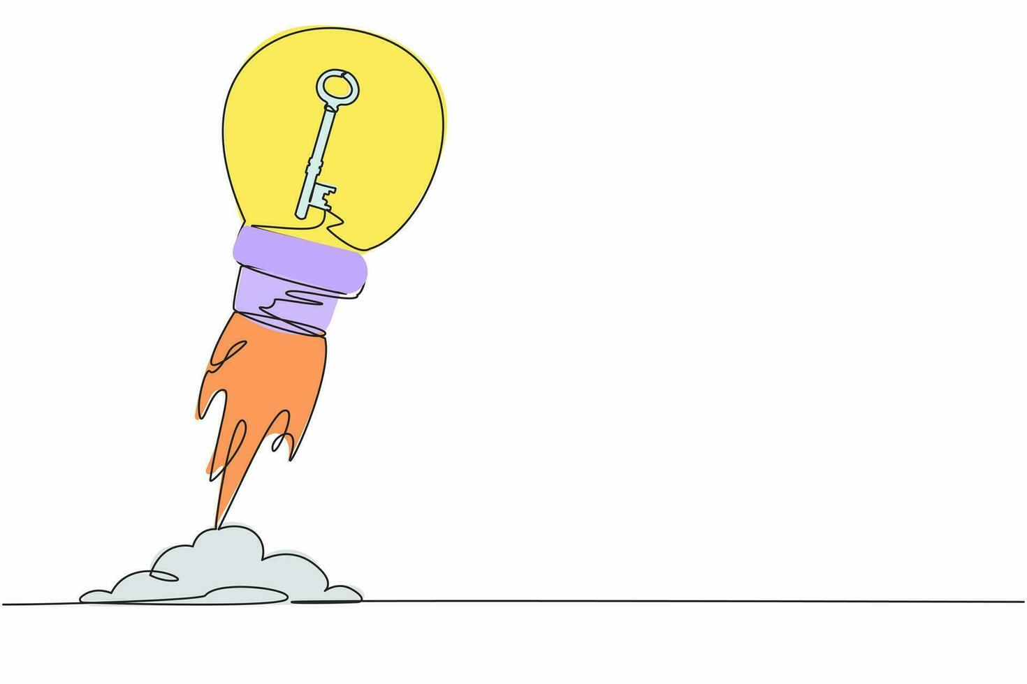 Single continuous line drawing key launching with light bulb. Key performance indicator skyrocket trough the sky. Tremendous business success metaphor. One line draw graphic design vector illustration Pro Vector