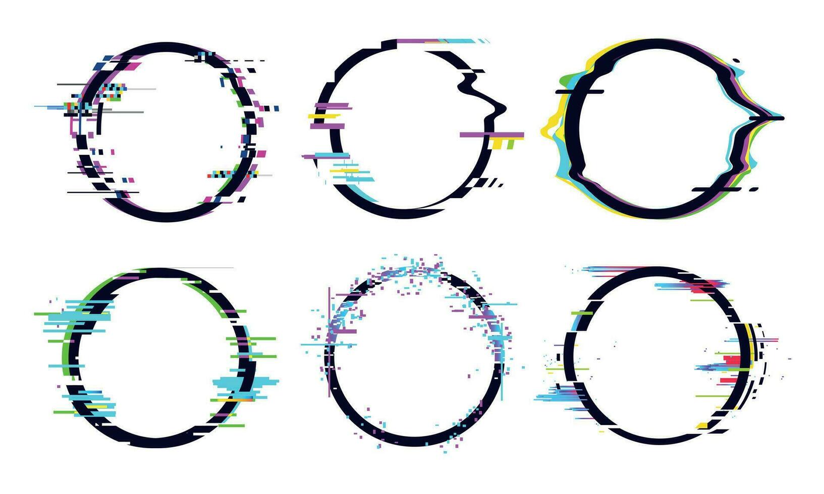 Glitch circle frame effect, circle glitch collection Pro Vector