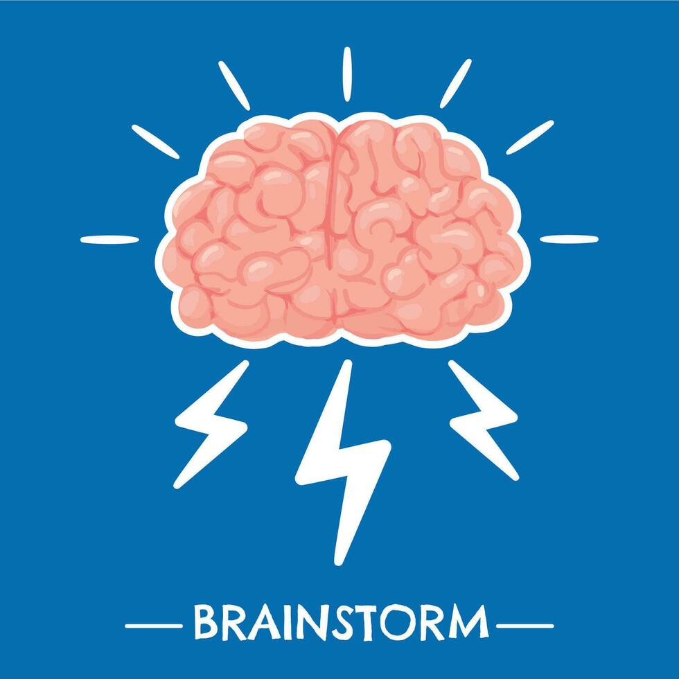 Brainstorming. New idea brain innovation and solutions, power creative mind, learning and invention, science knowledge flat vector concept Pro Vector