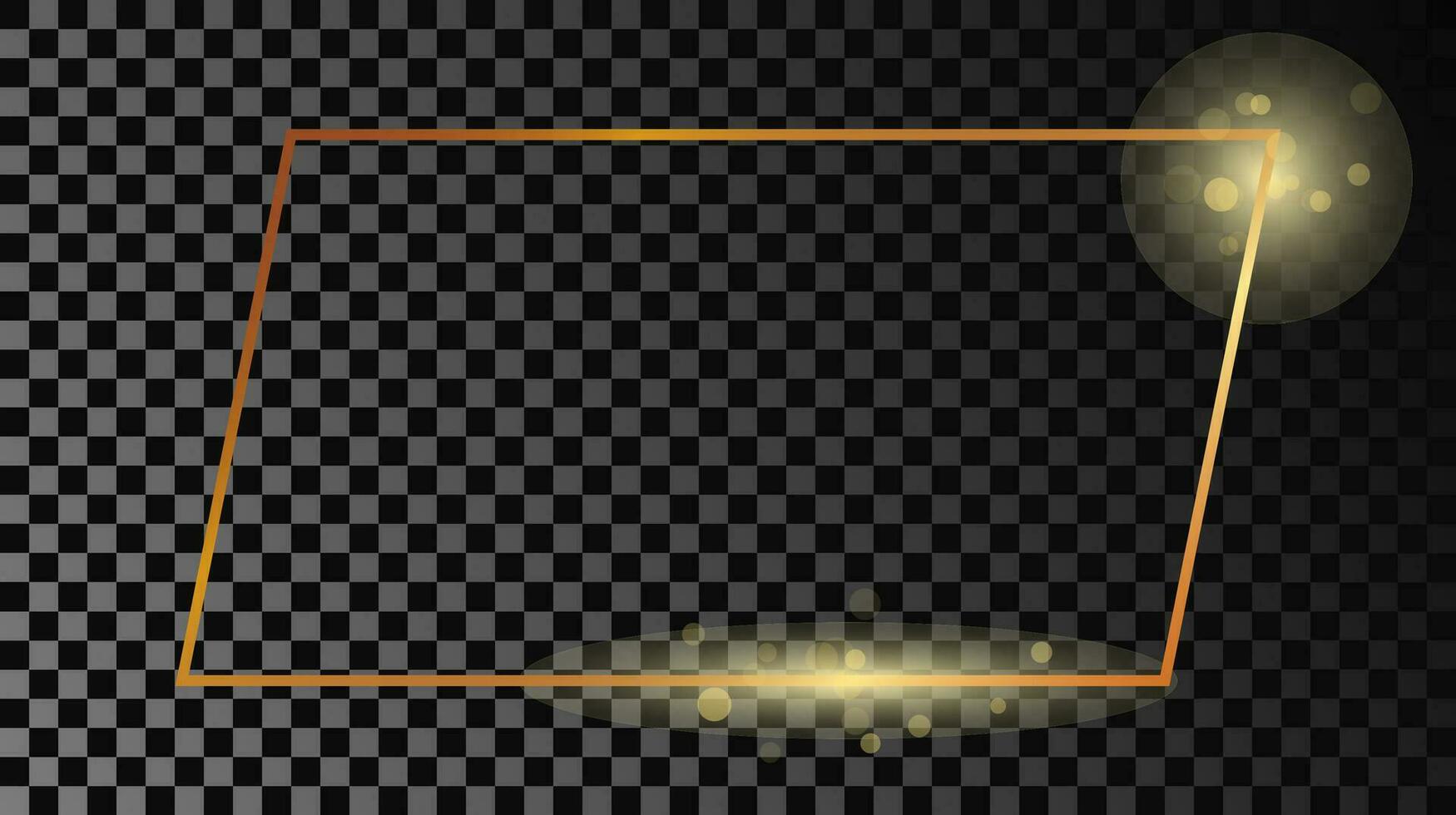 Gold glowing rectangular shape frame isolated on dark background. Shiny frame with glowing effects. Vector illustration. Pro Vector