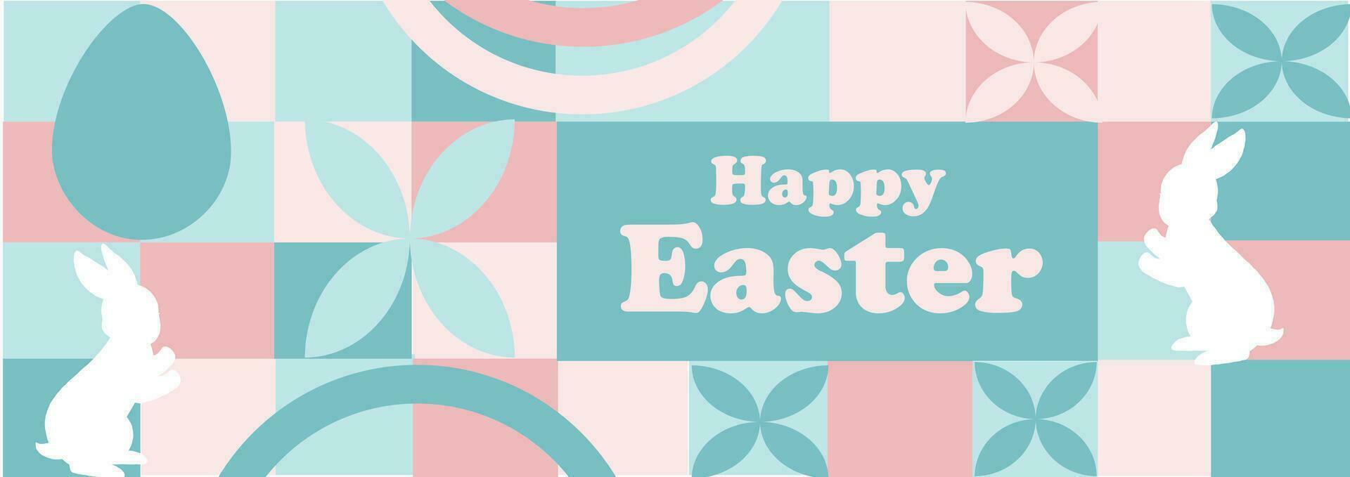Creative bauhaus Geometric Happy Easter seamless pattern with geometric shapes. Spring vector background. Modern abstract concept for print, banner, fabric, card, wrapping paper, cover Pro Vector