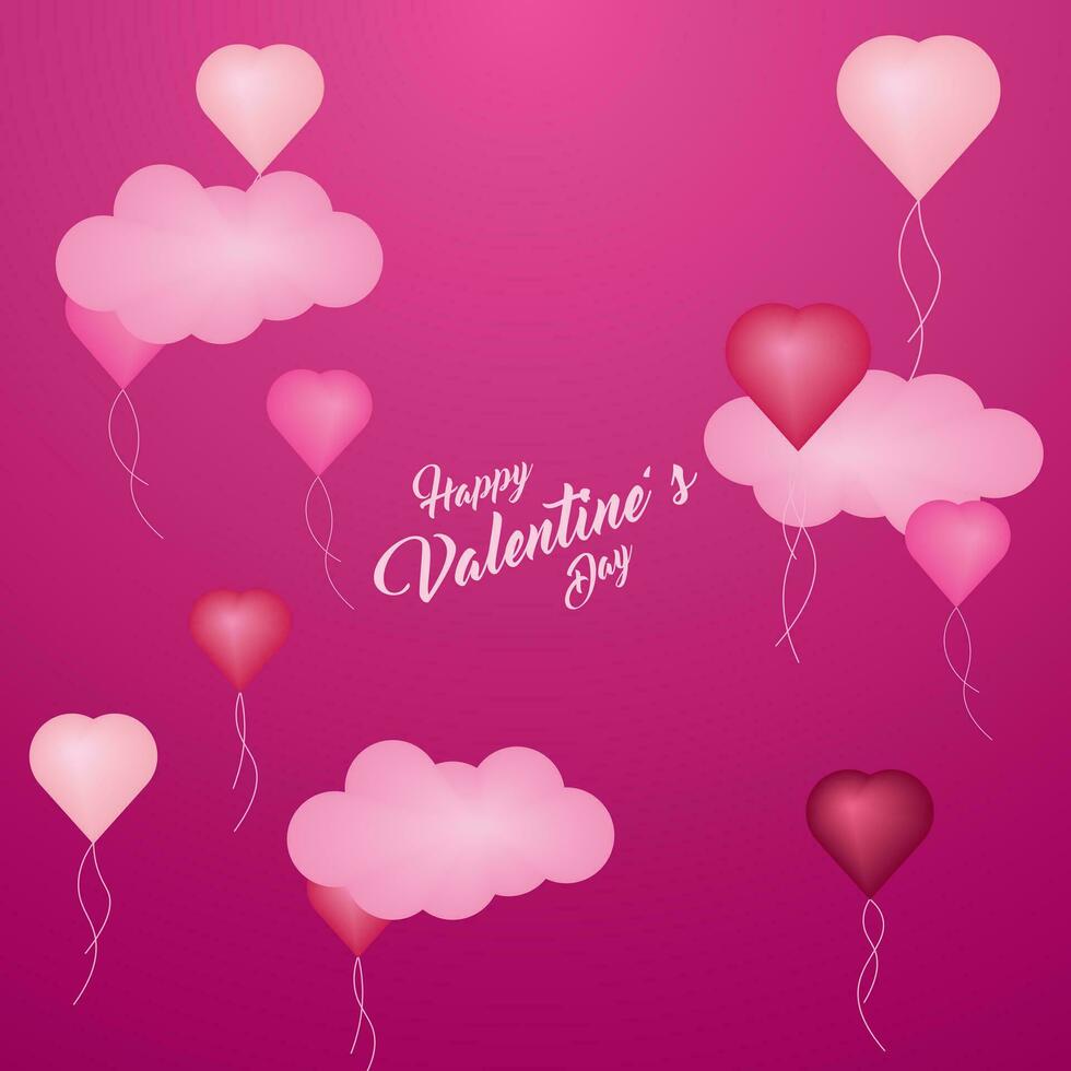 Background design with three-dimensional hearts and clouds. Place for text. Happy Valentine's Day sale header. vector