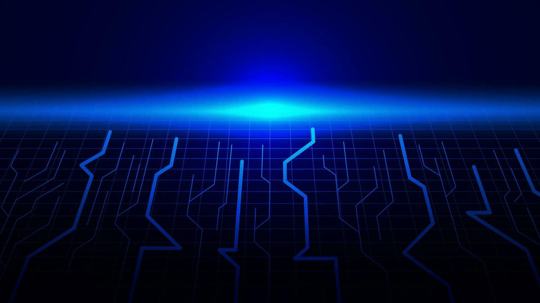 Perspective circuit lines with grid. Futuristic technology, digital data and modern communication concept on dark blue background. Vector illustration. Pro Vector