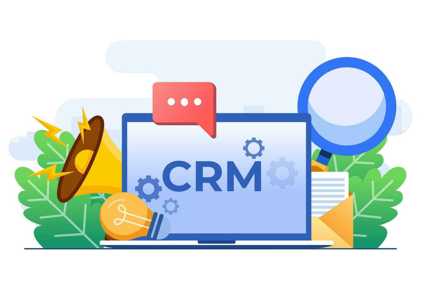 CRM, Customer Relationship Management concept flat vector illustration template for website banner, Organization of data on work with clients, Company Strategy Planning, Business Data Analysis Pro Vector