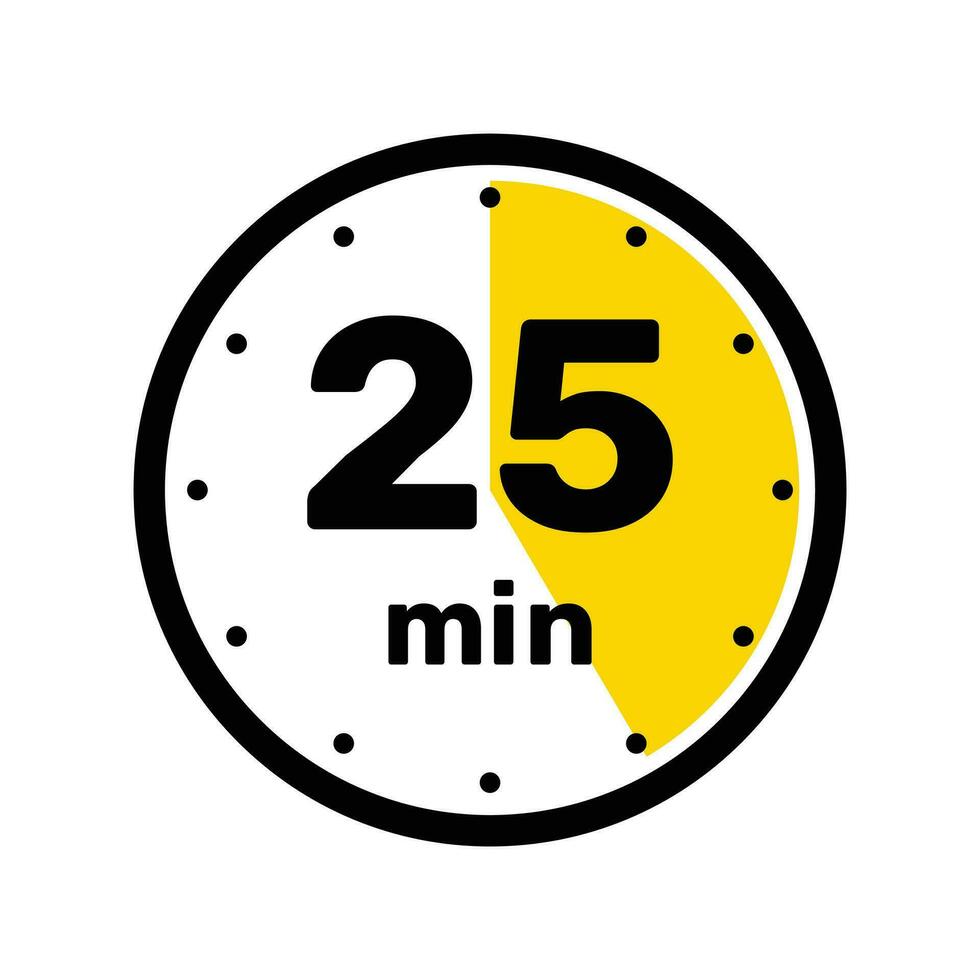 25 Minutes Analog Clock Icon white background design. Pro Vector