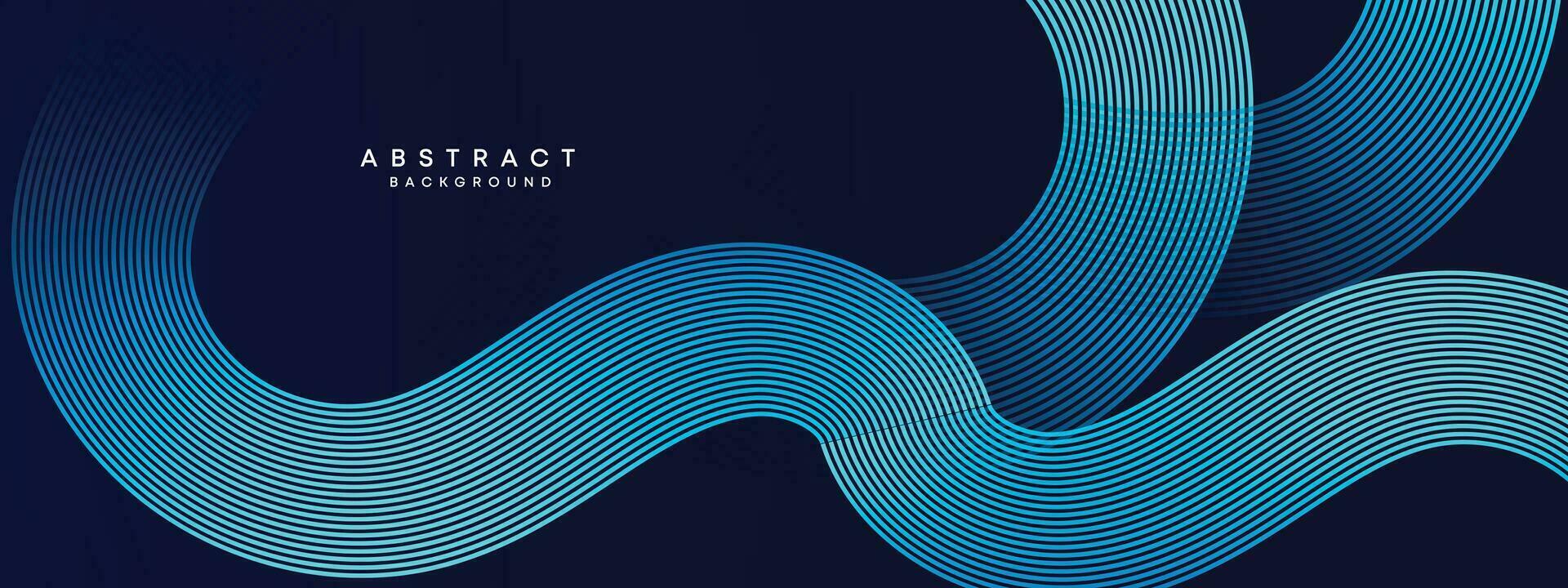 Abstract Dark Blue Waving circles lines Technology Background. Modern gradient with glowing lines shiny geometric shapes and diagonal, for brochures, covers, posters, banners, websites, header Pro Vector