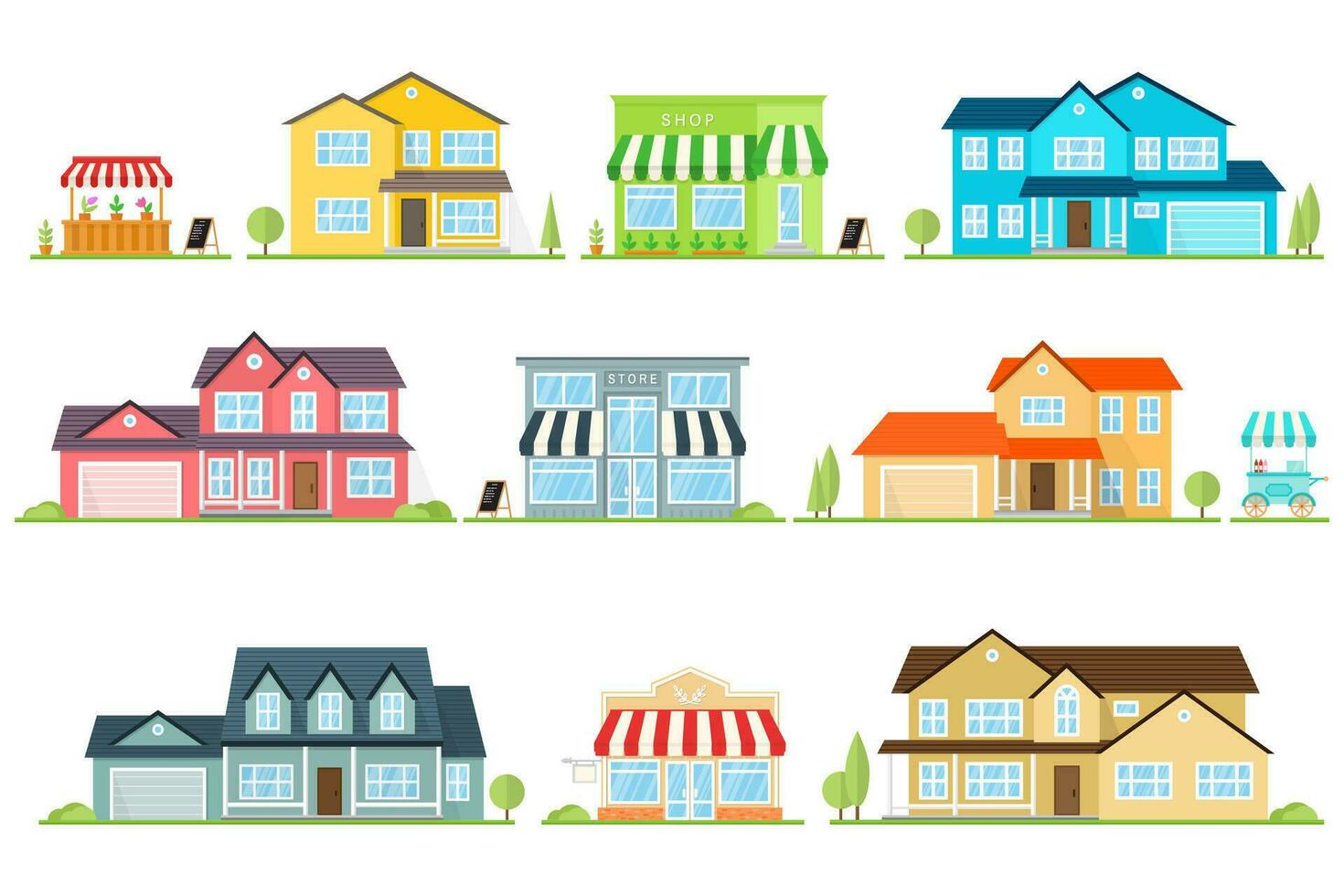 Vector flat icon suburban american house and street store For web design and application interface, also useful for infographics. Family house icon isolated on white background. Pro Vector