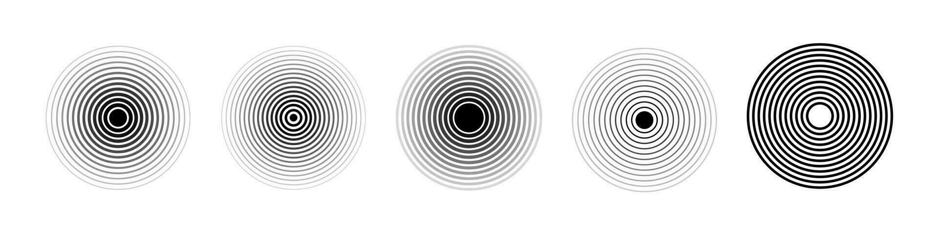 Sound ripple of a circular wave pack. Radio signal or splash of water. Isolated set of vector elements on white background. Pro Vector