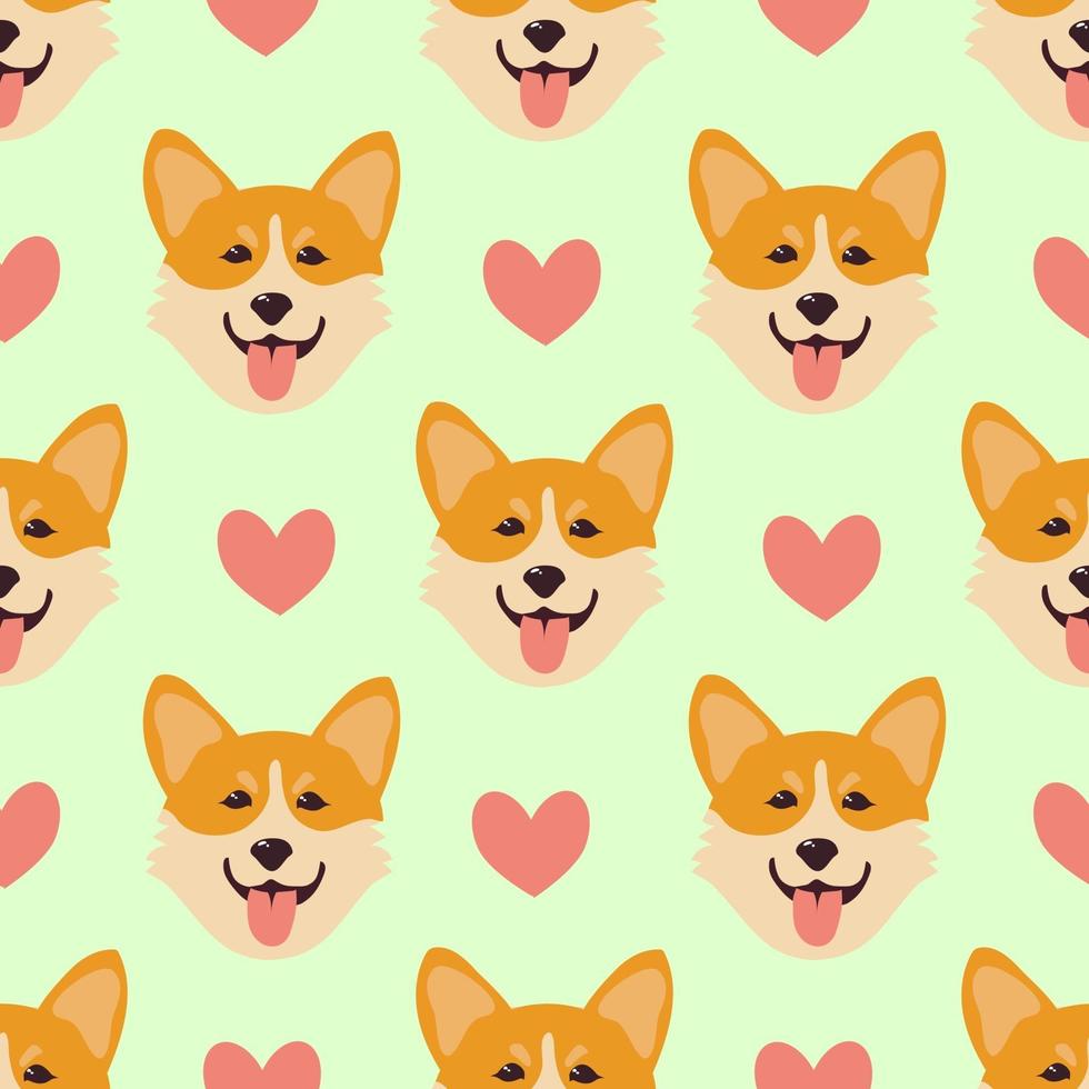 Seamless pattern with corgi. Background with a pattern of a dog's face. Vector flat illustration. Pro Vector