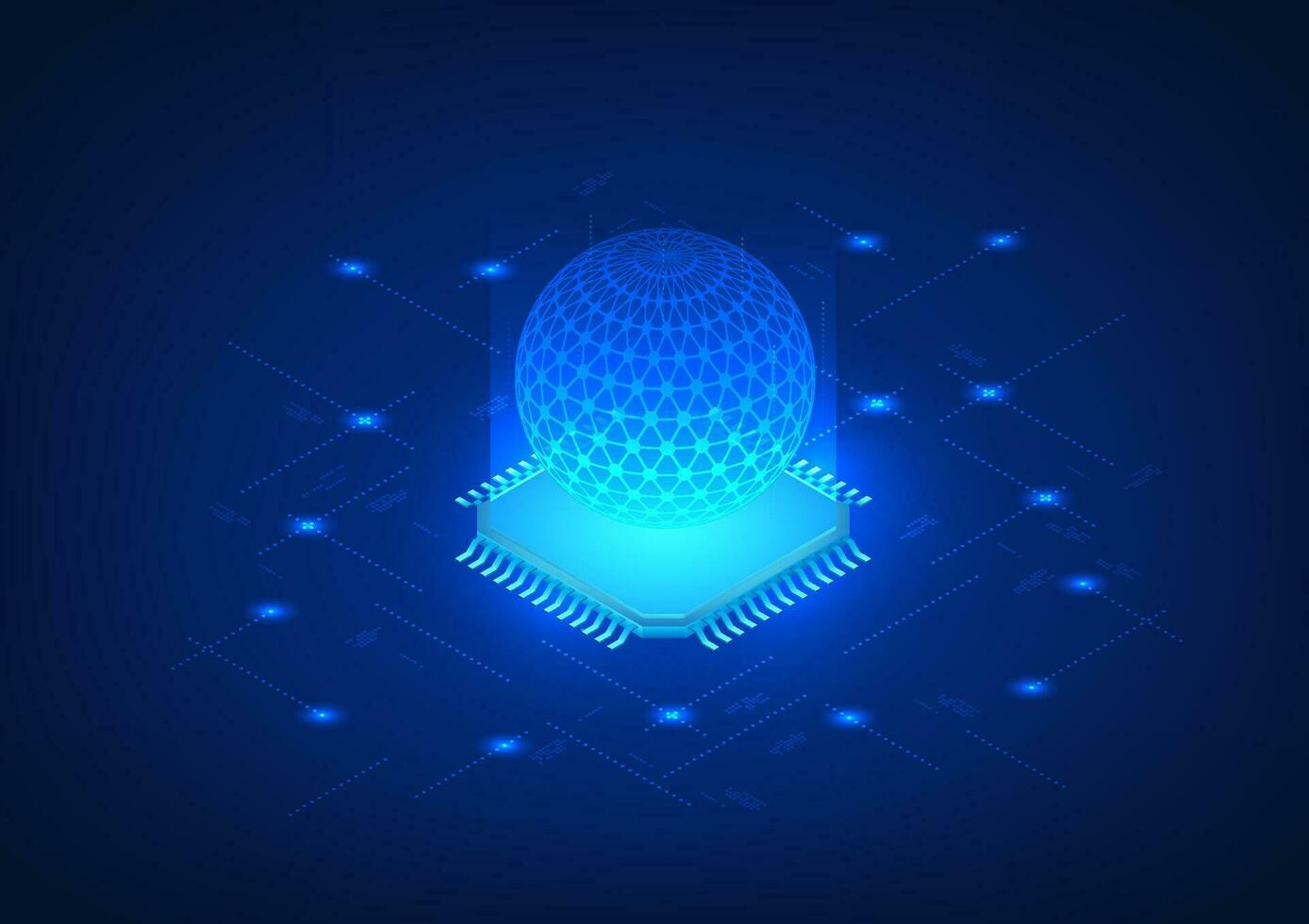 Technology background, Microchip is a processor like the brain that controls information. Effective operation of systems and technological equipment with the lines of light that send information Pro Vector