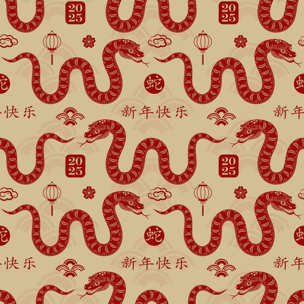 Seamless pattern with Asian elements for happy Chinese new year of the Snake 2025 Pro Vector