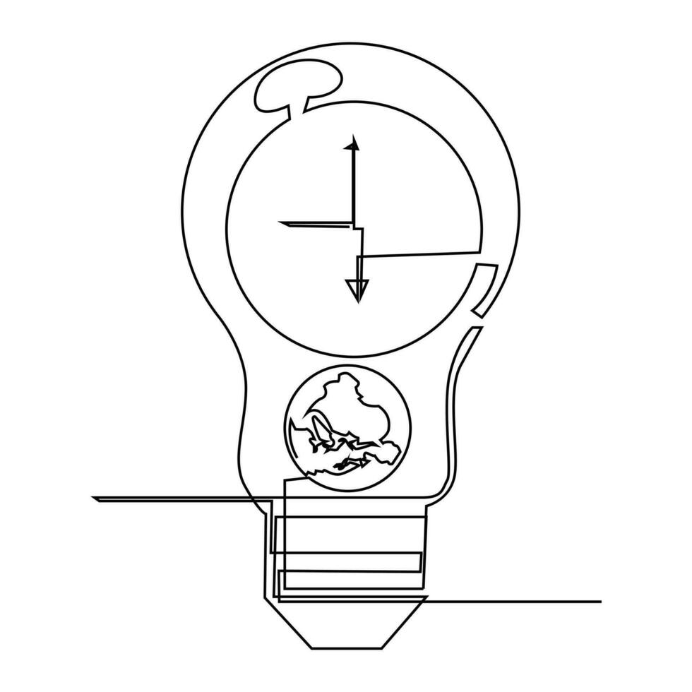 continuous single line earth globe world map outline vector art drawing and world earth hour concept simple design