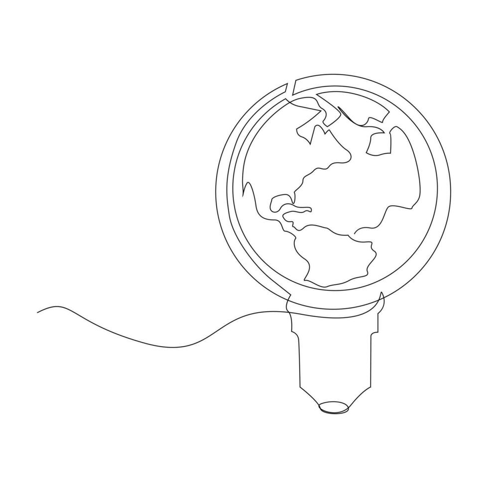 continuous single line earth globe world map outline vector art drawing and world earth hour concept simple design